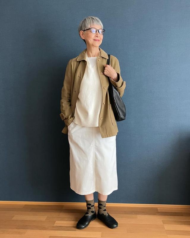 每个人都有适合自己的风格,到了70岁以后,要围绕“简约+质感”的穿搭。