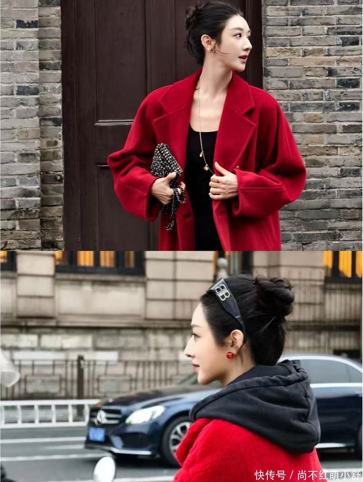 同时,配合大光明发型,她会选择V领的设计,适度增加颈部和锁骨区域的露肤度。这样不仅能延伸颈部线条,显得人更修长挺拔,还能与干净的发型形成呼应,这不就是教科书级的“高智感穿搭”吗?