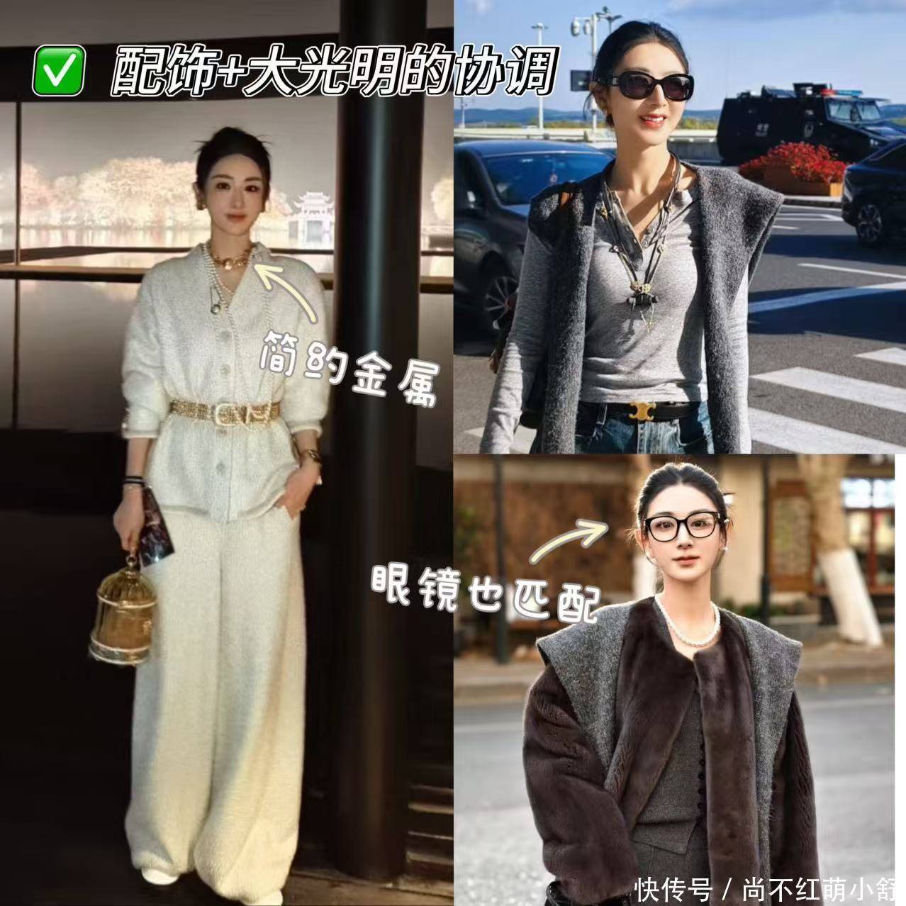 记住,配饰要“少而精”,最多不超过2件,不然会像圣诞树哦!