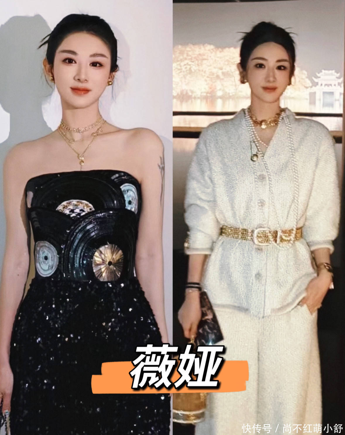 薇娅示范2:正式场合——慵懒大光明+抹胸裙+长项链,高级感不输女明星